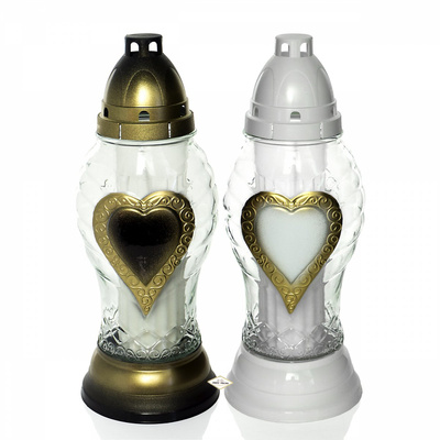 Znicz Polski Serce Róża szklany złoty 27 cm