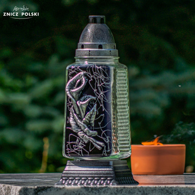 Znicz Polski 519 róża szklany srebrny 24 cm